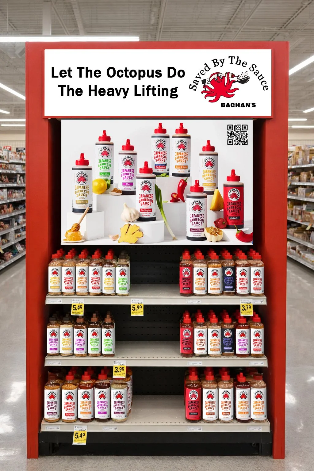 Bachan’s can collaborate with retailers to put Endcaps on their ailes with recipes to enhance culinary disasters with Bachan’s sauce