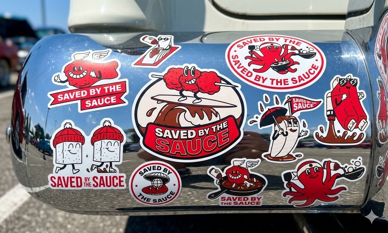 Merch that could be sold or given out at the Mobile Rescue Unit: Stickers, T-shirts, etc.